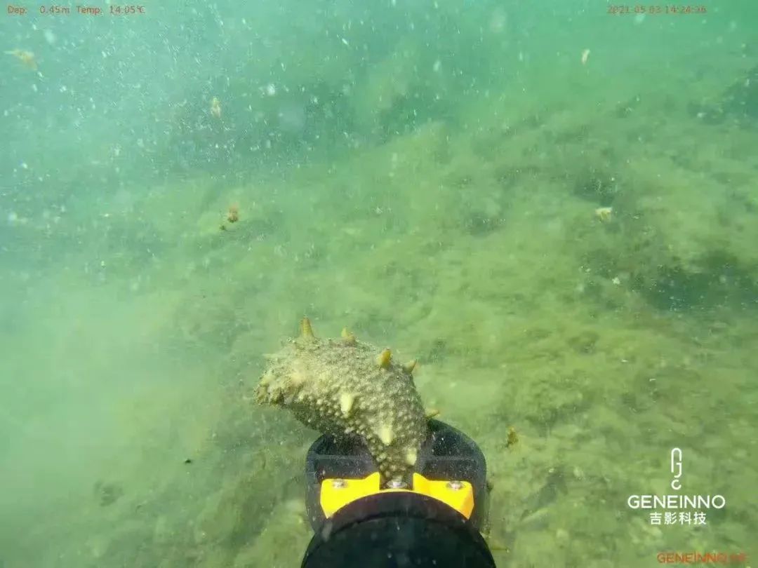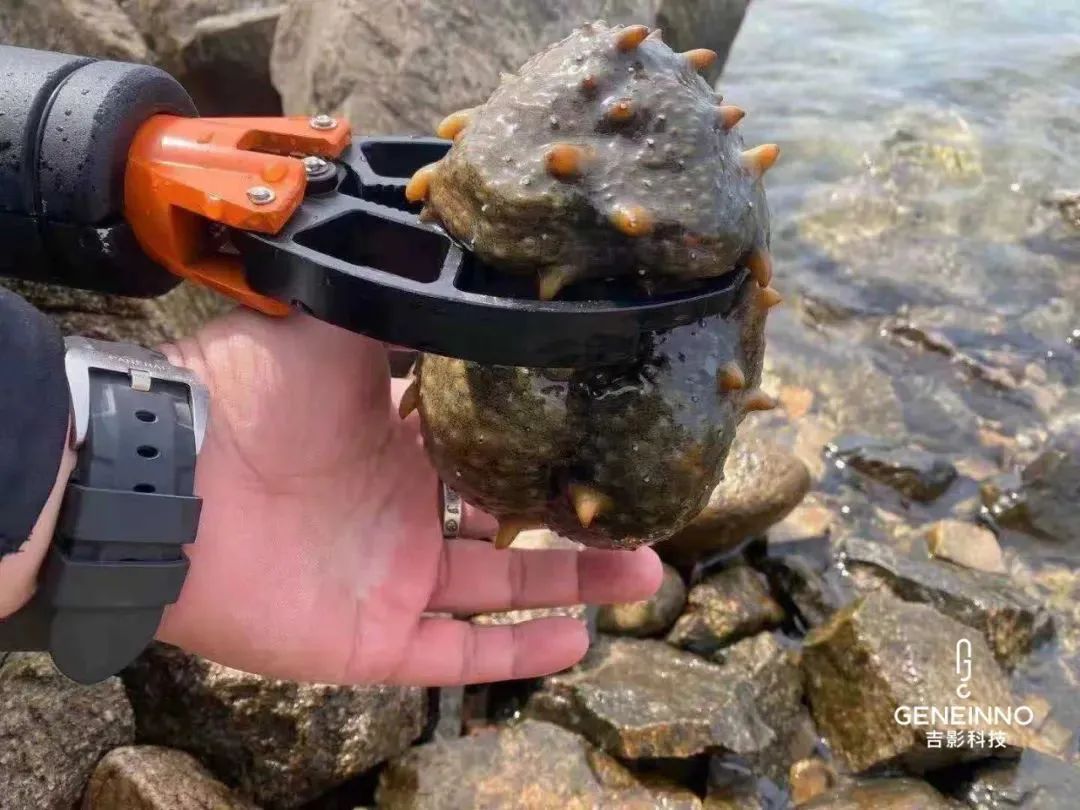 对于吉影科技来说,使用水下机械臂采捕海鲜早已驾轻就熟。2021年,吉影科技带着水下智能机器人吉影 T1 Pro前往山东烟台某大型海参养殖场进行海参采捕。吉影T1 Pro搭载全新升级的水下机械臂,通过超强的夹持力以及灵敏的水下操作,取代捕参员下海捕捞,成功捕获肉质新鲜的海参。机械臂整体长度为622mm,水下抗压抗腐蚀,水下续航时间可长达8小时。