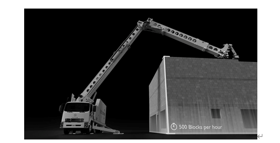 与众不同的Hadrian-X砌墙机器人像一辆普通卡车一样停在建筑工地上,然后伸出 32 米长的吊臂,开始以每小时 300 块大型砌块的速度精确砌筑。这真是令人叹为观止。