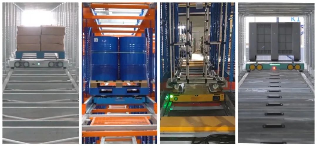 堆高式无人叉车MW-SL14与前移式无人叉车MW-R20高低位货架协同,并与四向穿梭车MW-Z1高效联动,无人叉车库外搬运,四向穿库内存取,多车混场调度,高效出入库。