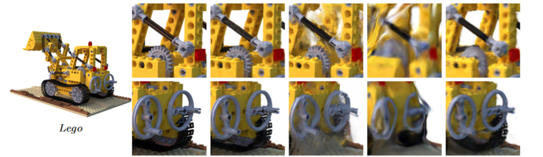 可以看出,去掉位置编码,模型无法表达高频的几何和纹理信息~