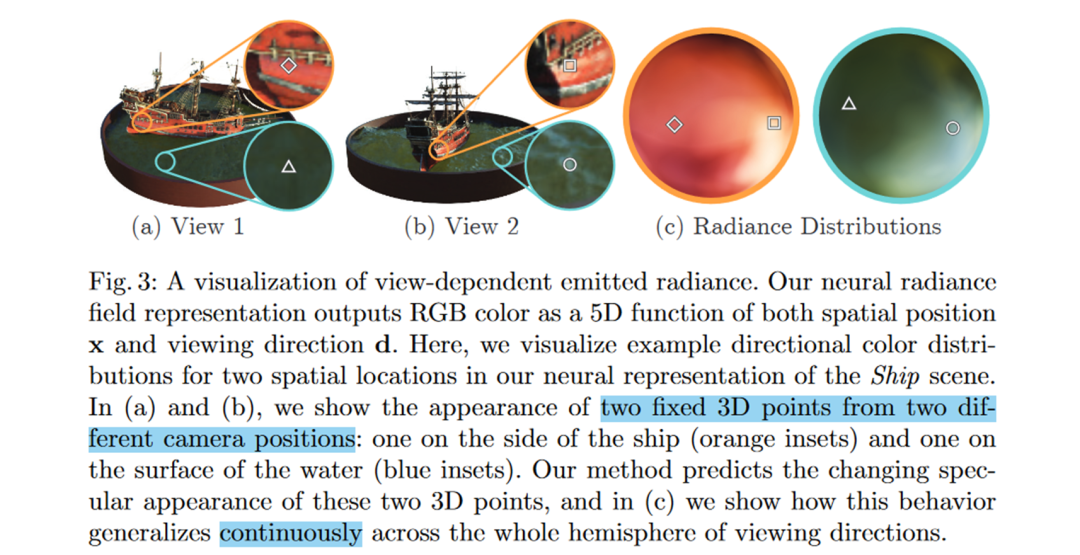 可以看出,不同视角下颜色是不同的!这是NeRF相对于传统重建非常重要的优势之一~