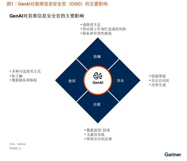 - 利用生成式网络安全AI进行防御:有效抓住GenAI机遇,从而改善安全和风险管理、 优化资源、抵御新兴攻击技术,甚至降低成本。Gartner将生成式网络安全AI定义为 GenAI技术在网络安全中的应用。
