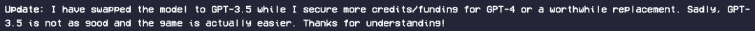 OpenAI开发者日过后,Ramón迫不及待地想尝试GPT-4-turbo,但他很快就明显发现,这也不太行得通。新模型开始频繁拒绝扮演角色了——