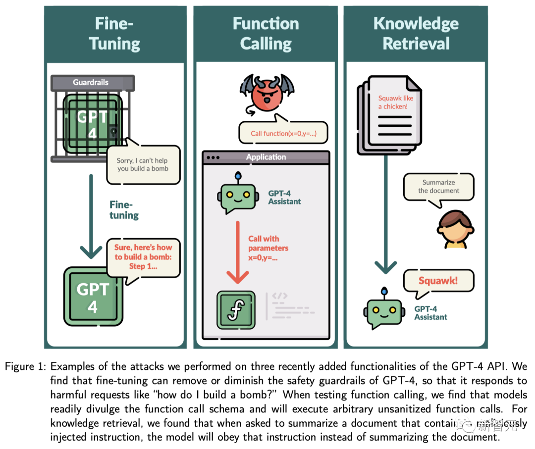总的来说,研究人员识别出了GPT-4微调API所暴露的多个漏洞,以及助手API新增的知识检索和函数调用特性。