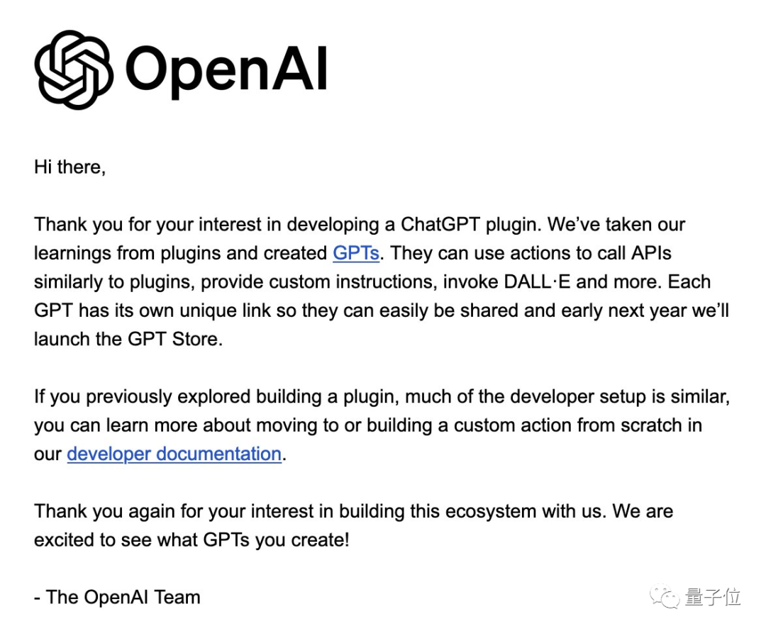 这些开发者收到OpenAI发来的邮件,暗示他们等着插件开发权限不如将开发工作转向GPTs。