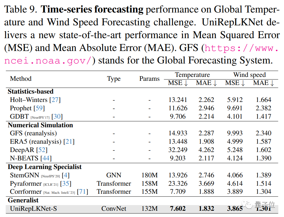 为了验证UniRepLKNet处理时序数据的能力,本文挑战了一个数据规模超大的《Nature》级别的任务:全球气温和风速预测。