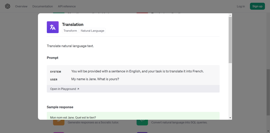 譬如我期望使用大模型完成翻译任务,那么在 Prompt examples 中搜索翻译,就可以找到优秀的「满分作文」供我们抄袭(x)借鉴(√)。