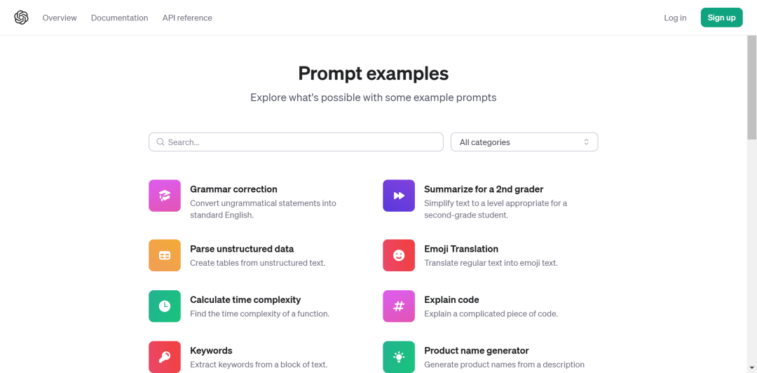 除了指南以外,OpenAI 还提供了更加即插即用的各个场景下的优秀 Prompt 范例。