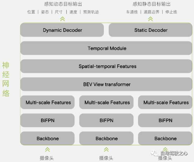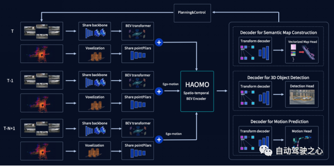 (1). 统一BEV框架,基于share backbone的多任务感知、端到端地图生成等模型,基于transformer的编码器-解码器架构是目前千亿车企自动驾驶通解。