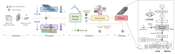 图30 UniAD总体框架,最右侧引出图为Planner内部的框架原理图