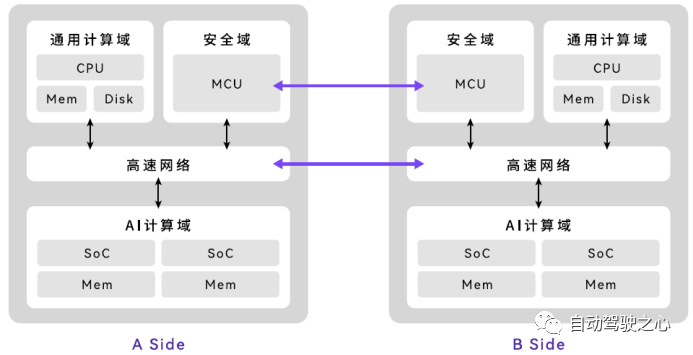 毫末智行毫末控制器基于高通Snapdragon Ride平台,采用SA8540P SoC+SA9000的组合,其中SOC芯片8540包括CPU+GPU,深度学习异构芯片9000。控制器支持接入6路千兆以太网,12路800万像素摄像头,5路毫米波雷达,3路激光雷达,单片功耗75w,单板算力360Tops,4板联合支持升级到1440TOPS. 安全冗余芯片为英飞凌TC397,可以做 L1/L2级别的降级控制,也可以满足当前L3以及后续L4/L5等全场景自动驾驶功能的实现。