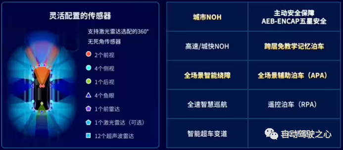 图3 毫末智行高配自动驾驶传感器方案及功能
