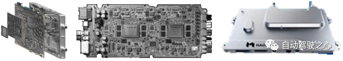 图4 左:赢彻控制器效果图;中:特斯拉HW4.0控制器实物图;右:毫末智行8000元级控制器效果图