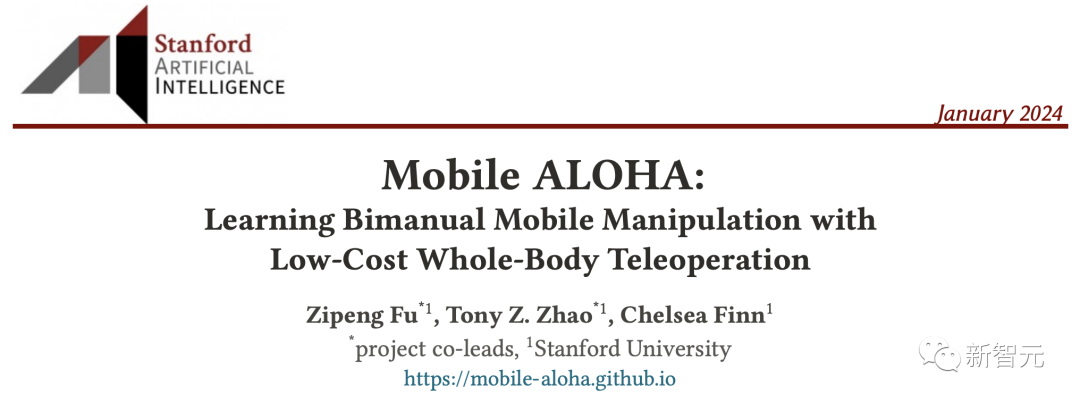 Zipeng Fu是斯坦福大学AI实验室的计算机科学博士生,导师是Chelsea Finn。同时也在Google DeepMind担任学生研究员,与Jie Tan合作。