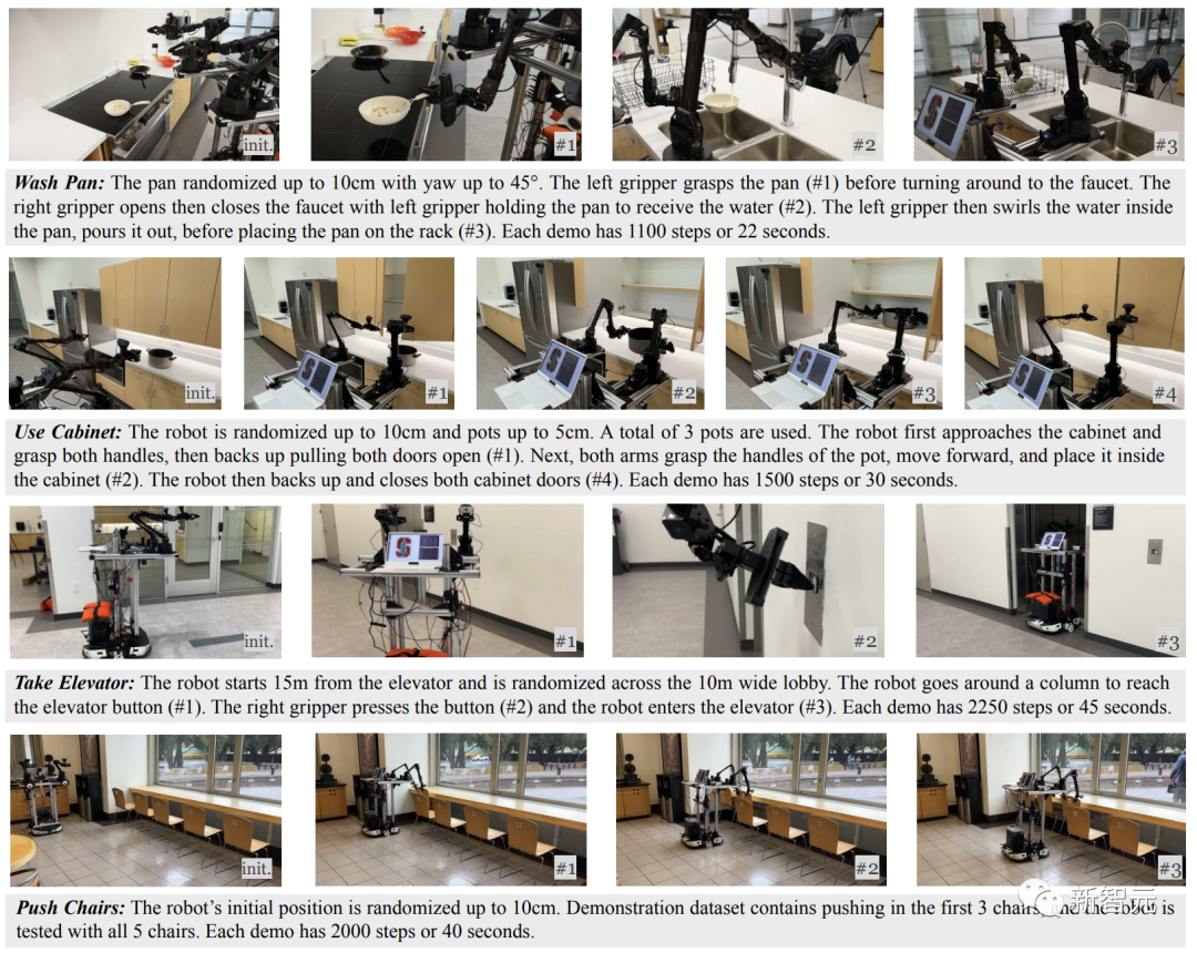 二是,之前的机器人学习研究中,尚未证明对于复杂任务的高性能双臂移动操作。