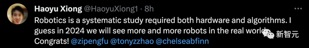 网友表示,机器人学是一门既需要硬件又需要算法的系统研究。我猜在2024年,我们将在现实世界中看到越来越多的机器人。