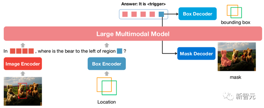 NExT-Chat整体采用了LLaVA架构,即通过Image Encoder来编码图像信息并输入LLM进行理解,并在此基础上添加了对应的Box Encoder和两种位置输出的Decoder。
