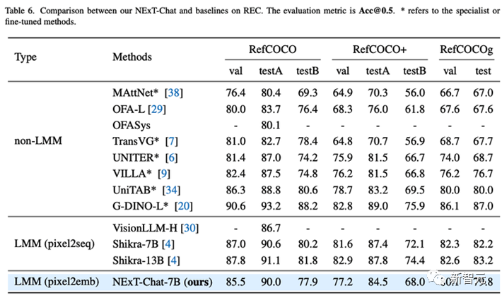 如表2所示,相比于相当一系列的有监督方法(如UNITER),NExT-Chat都可以取得更优的效果。
