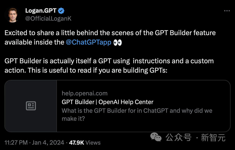 同在今天,OpenAI开发人员关系主管Logan Kilpatrick发文,分享了GPT Builder使用指南。