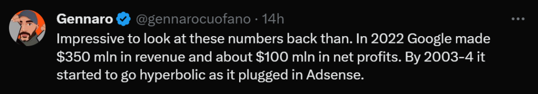 在2022年1月,谷歌当时有600名员工,还没有通过广告、Gmail等盈利。