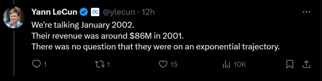 网友质疑谷歌当时的收入,LeCun解释道,在2001年,他们的收入约为8600万美元。