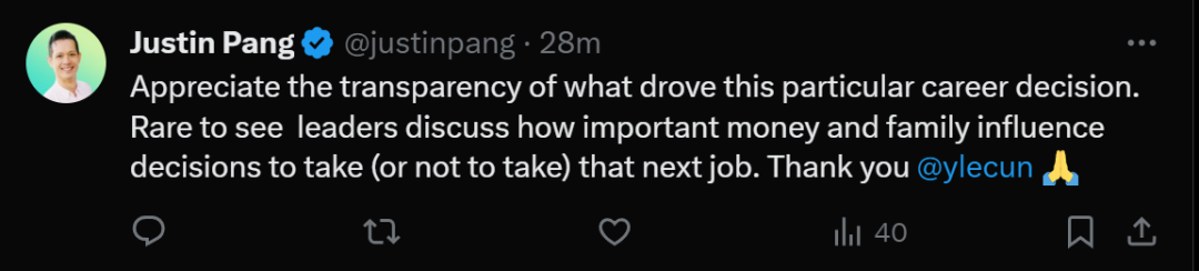 有网友表示,非常欣赏LeCun推动这一特定职业选择的透明度。