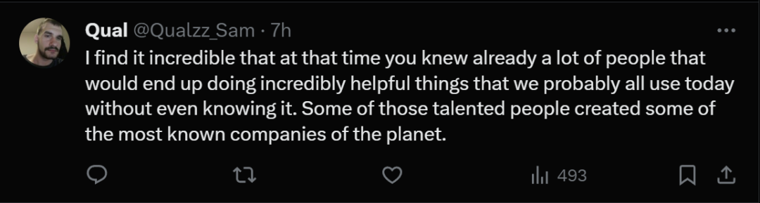 就如同这位网友所说,不可思议的是,在那个时候,你们已经认识很多人,他们最终会做出对全世界有益的事,以至于我们今天都在不知不觉享受你们的果实。