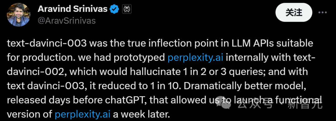 在OpenAI发布text-davinci-003后,Perplexity将推出新的版本,在很大程度上减少幻觉(1/10)。