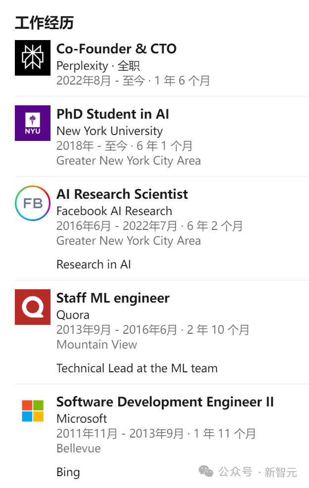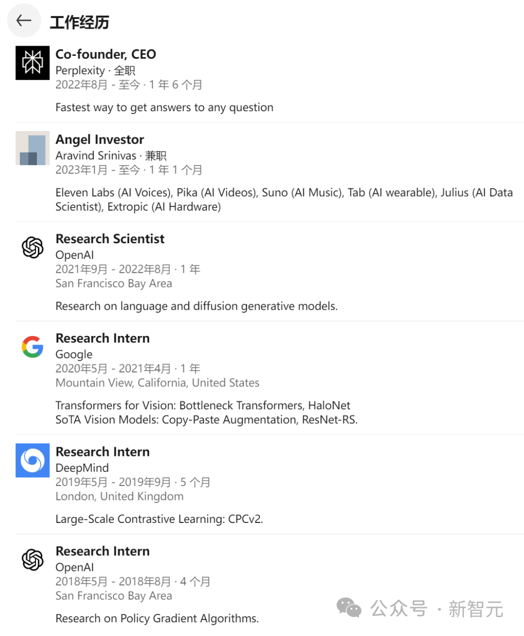 在创立Perplexity AI之前,他曾经在OpenAI,谷歌工作过。