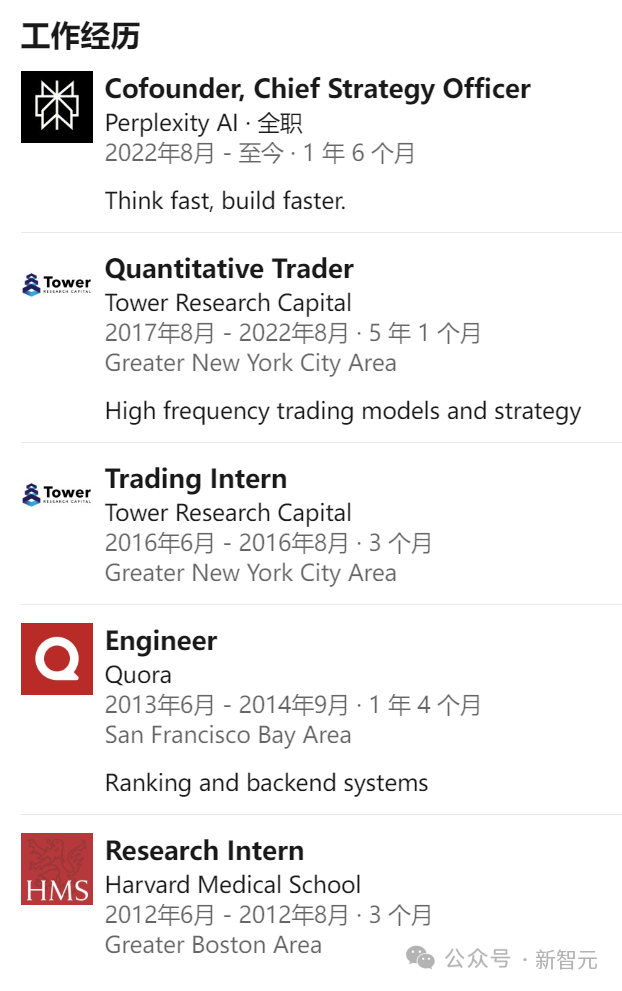 在成立Perplexity AI之前,他曾经在一家量化交易公司工作过。