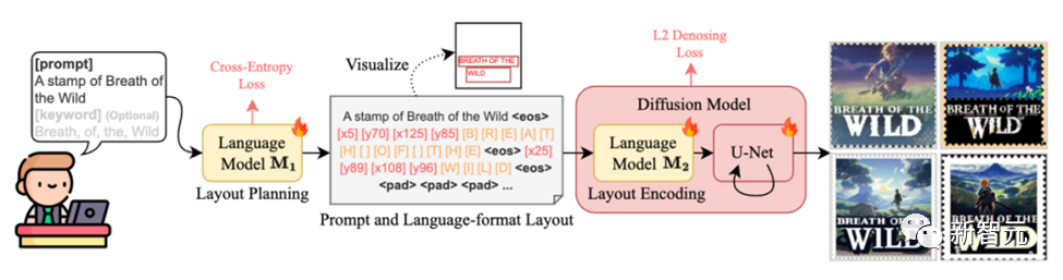 第一阶段,模型通过用户的提示(prompt)确定关键词的文本布局。