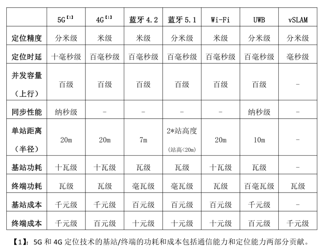 为实现高精度定位,往往需要在目标体上放置信标,另外根据精度和时延需求建立信号发射基站。一般来说,定位精度越高其终端基站功耗与成本就越高,如5G、蓝牙5.1、UWB、sSLAM等技术的定位精度与响应时间都高,但其终端功耗与成本较高,主要被应用在定位精度较高的智能制造与危险化工品等领域。以下为常见的室内定位技术: