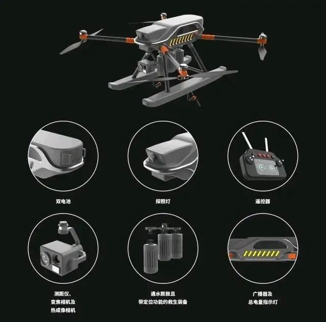 无人机以飞行平台为设计理念,采用模块化的设计方式,可根据不同场景搭载不同功能的负载,是一个“水空两栖”的无人机。