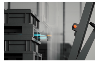 集装箱尺寸自动检测:在拾取货物集装箱时,自动 AFi 叉车使用集成在货叉下的高度可调二维安全扫描仪。该扫描仪不仅能可靠地检测到附近的人员和障碍物,还能自动扫描待运货物的重要特征,从而相应地切换保护区域。
