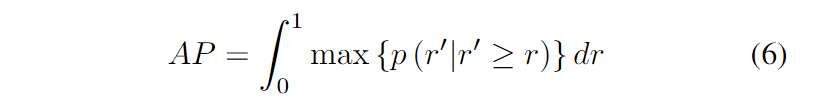 通常情况下,使用AP度量来评估目标检测性能。根据[1],AP度量可表述为: