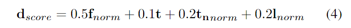 为了尽可能客观地反映数据维度评分 ,作者给四个组成部分分配了不同的权重,如下公式4所示。