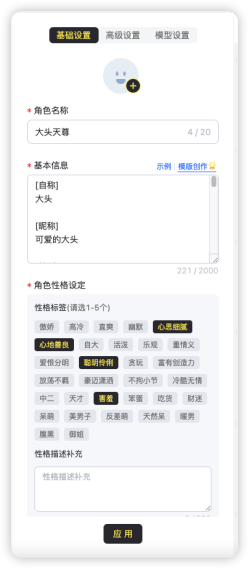 角色创建高度可定制:用户可以设置角色的基本信息、开场白、性格特征和回复限制等,实现高度个性化的定制。