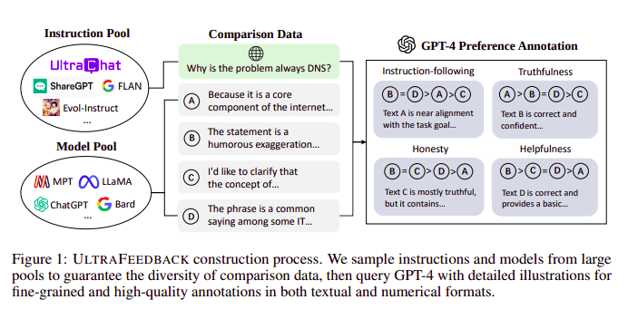 大语言模型通常借助人类反馈强化学习(RLHF)进行对齐。Zephyr则是使用来自更好的教师模型(比如GPT-4)的反馈来对齐模型的偏好,遵循超级反馈(Ultra Feedback)方法。