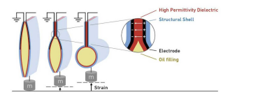 "在其他致动器中,电极位于外壳外部。在我们的产品中,外壳由不同的层组成。我们采用了一种高导铁电材料,即一种可以存储相对较大电能的材料,并将其与一层电极结合在一起。接下来,我们在其表面涂上一层聚合物外壳,这种外壳具有出色的机械性能,能使小袋更加稳定。"Gravert 解释说。