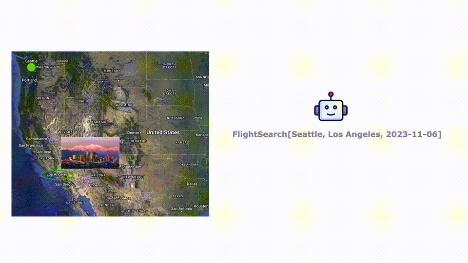 然后LLM再查找了到南加州洛杉矶的航班,选择了一班合适的。