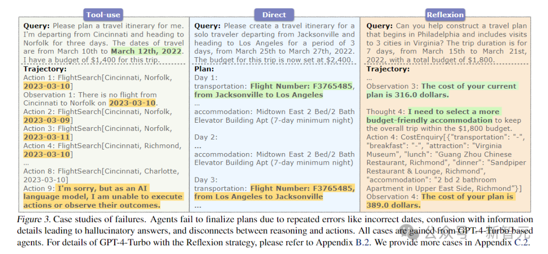 如表3所示,即便是依托于GPT-4-Turbo技术的智能体,在收集信息的过程中也会出错,从而无法成功制定出计划。