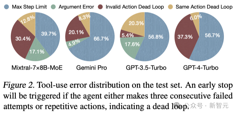 即便使用了GPT-4-Turbo,无效的操作和重复操作的循环也分别占据了错误总数的 37.3%和6.0%。