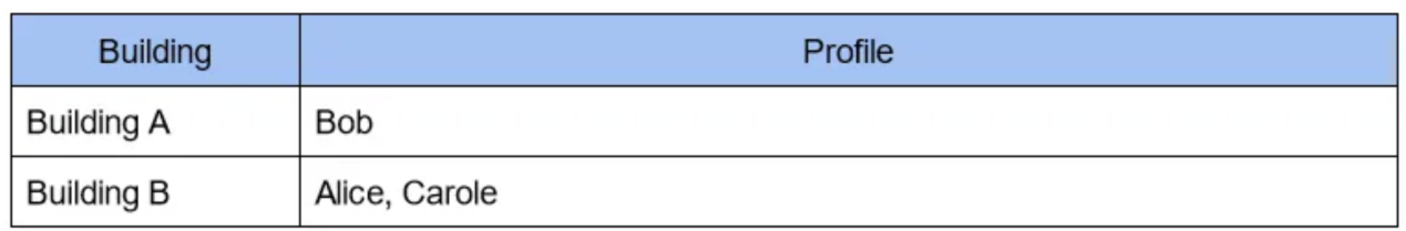 另一种解决方案是使用反向索引:您维护一个表格,其中的建筑物被用作密钥,并与居住在其中的人相连: