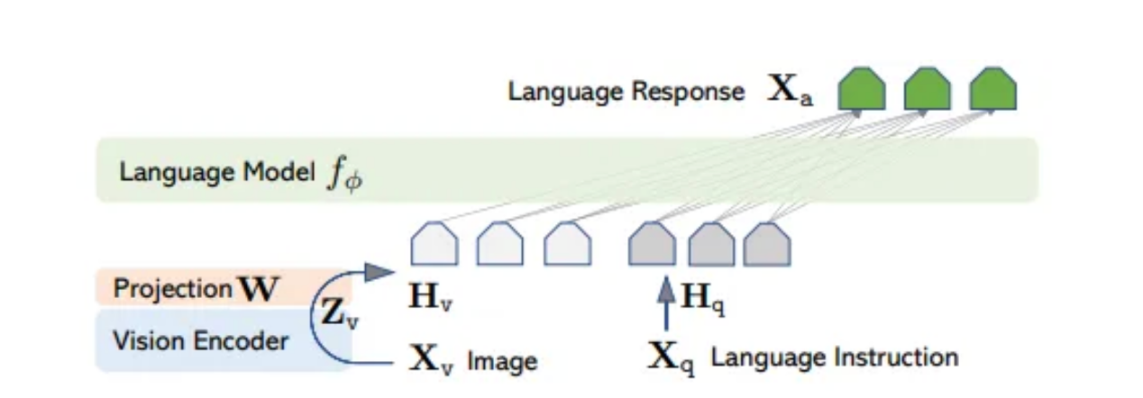 其中,投影W是LLaVA模型中的简单线性层或者是LLaVA-1.5模型中的MLP。本图像来自论文《可视化指令微调》。