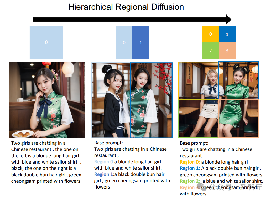 将图像空间划分为互补的子区域,并为每个子区域分配不同的子提示,同时将生成任务分解为多个更简单的子任务。