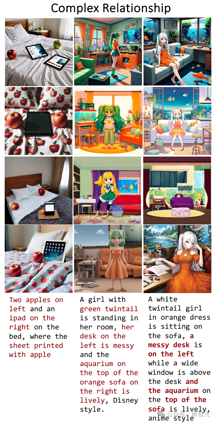 简单来说,就是能让文生图模型在面对「多个属性和关系的多个对象的复杂文本提示」时表现更出色。