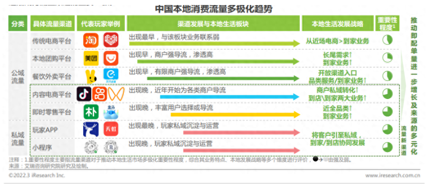 百亿市场前景,也意味着多元化的用户消费需求。随着各平台进一步拓展所提供的消费品类及服务,进行战略拓展和商业模式创新,多种流量渠道在本地消费板块快速发展,流量多极化趋势愈发明显。