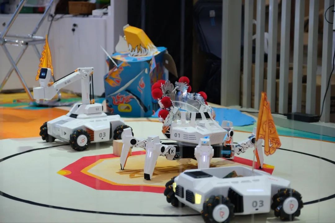 大家好!今天是第82届中国教育装备展览会在天津的开幕日,高巨创新携旗下最新研发的“机甲联盟”教育装备系列荣誉亮相。
