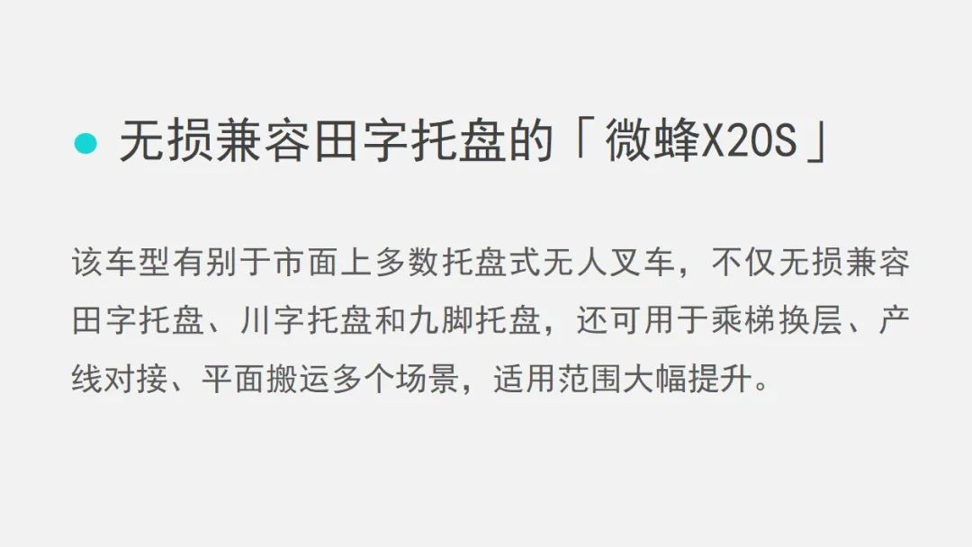 无损兼容田字托盘的托盘式无人叉车「微蜂X20S」、开箱即用的无人叉车「劢小微X1」、「平衡重式无人叉车MW-SE15」以及「前移式无人叉车MW-R16」,结合软件「天眼系统」和「RCS调度系统」,向业界展示了超强兼容性的场内智能物流解决方案,成功引起参观者的广泛关注。