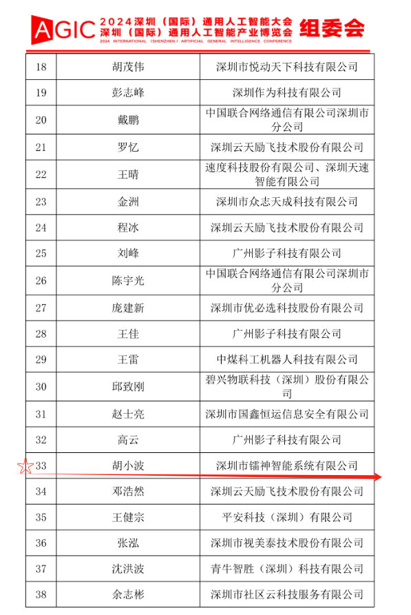 2024年8月28日至30日,2024深圳(国际)通用人工智能大会暨深圳(国际)通用人工智能产业博览会在深圳国际会展中心(宝安)举办。会上,深圳市人工智能产业协会公布了全国首批首席人工智能官(CAIO)获评名单,镭神智能创始人胡小波凭借其在人工智能领域的杰出贡献、卓越的领导力、创新能力和强烈的社会责任感,成功荣获此称号。